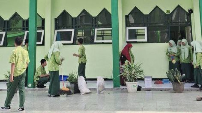 sehari penuh. Para siswa terlihat antusias membersihkan lingkungan madrasah