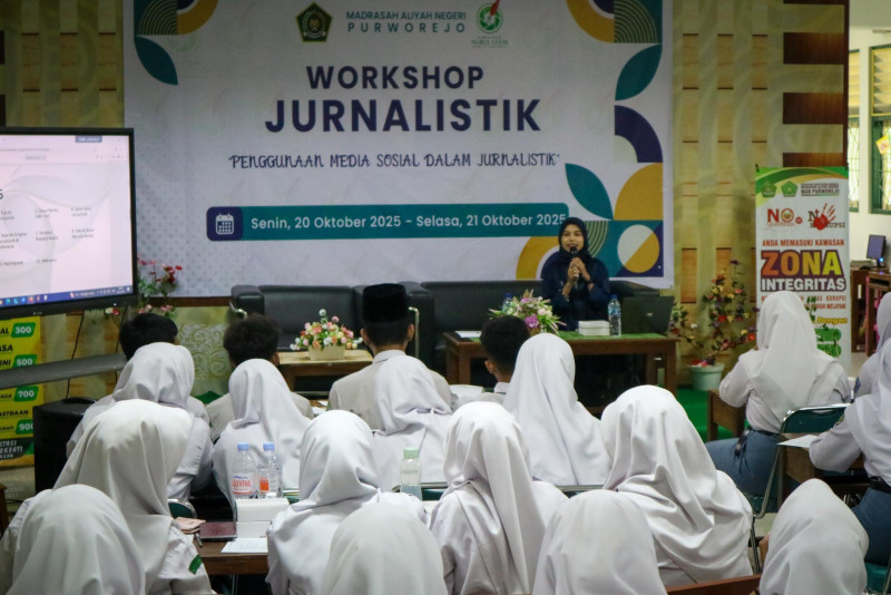 PURWOREJO - Madrasah Aliyah Negeri (MAN) Purworejo baru saja menuntaskan kegiatan Workshop Jurnalistik yang berlangsung selama dua hari, dengan mengusung tema "Penggunaan Media Sosial Dalam Jurnalistik." Workshop ini bertujuan untuk melatih siswa menjadi jurnalis yang mampu menyebarkan berita yang objektif atau sesuai fakta, memanfaatkan media sosial secara bijak dan bertanggung jawab dalam jurnalistik modern, serta untuk memperdalam keterampilan jurnalistik digital yang relevan dengan perkembangan teknologi masa kini.