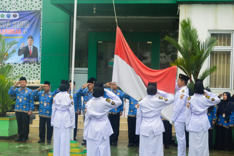 Bertindak sebagai Pembina Upacara adalah Ibu Hj. Miftakun Ni’mah, S.Pd. Dalam amanatnya, beliau menyampaikan pesan penting yang berasal dari Dinas Pemuda, Olahraga, dan Kebudayaan (Disporabud).